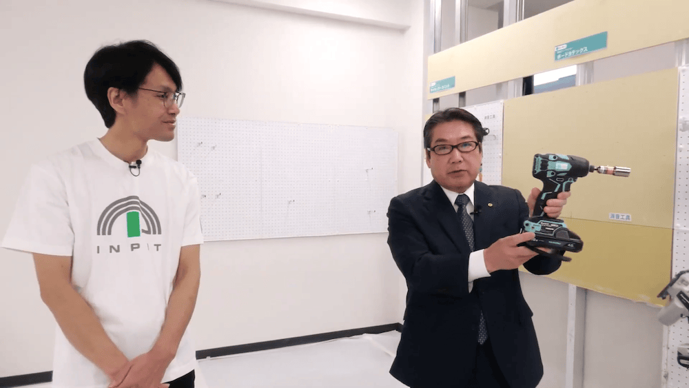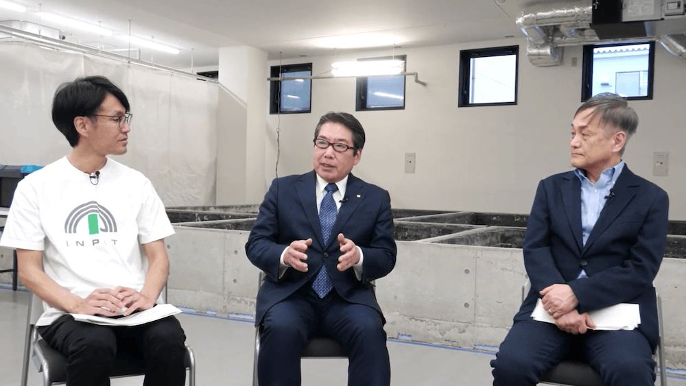 デモストレーション後は、高木社長、INPIT知財戦略部の鷲﨑亮部長、および丸高工業の知財戦略や海外展開の支援を担当するINPIT知財戦略エキスパートの井上尚幸氏によるディスカッションが行われました。